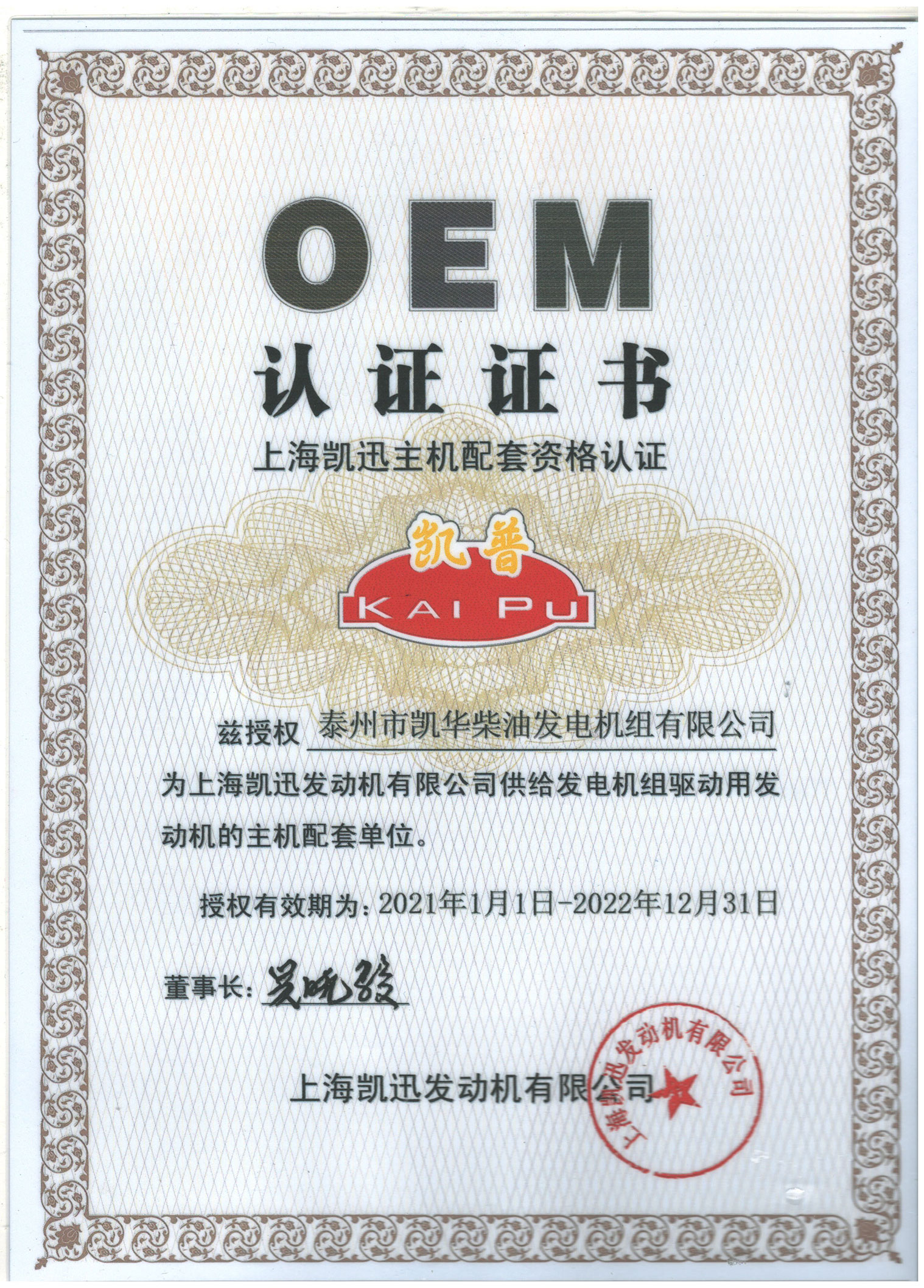 泰州市凱華柴油發(fā)電機組有限公司創(chuàng)建于2003年,是一家集柴油發(fā)電機組燃氣發(fā)電機組的研發(fā)、生產(chǎn)、銷售為一體的高新技術(shù)民營企業(yè),公司座落于“漢唐古郡,淮海名區(qū)”,具有“鳳凰城”美稱的祥泰之州——江蘇省泰州市,地處中國經(jīng)濟最發(fā)達的長三角經(jīng)濟圈,水陸空立體交通,地理位置十分優(yōu)越。公司目前注冊資本金11800萬元人民幣,生產(chǎn)基地占地六十畝,現(xiàn)有各類高素質(zhì)員工一百多名,專業(yè)技術(shù)人員達46人,其中高級技術(shù)人員16人,年銷售額近6億元。 公司主營產(chǎn)品:3~3000KW陸用柴油發(fā)電機組,15~600KW移動拖車電站,12~1000KW船用應(yīng)急柴油發(fā)電機組,各種靜音型、中高壓、多機并聯(lián)、燃氣等特種機組以及進口系列柴油發(fā)電機組,可滿足不同客戶的一切電力需求,還可滿足用戶不同電壓、不同頻率的要求。凱華公司是康明斯品牌的授權(quán)代理商,專業(yè)生產(chǎn)供應(yīng)康明斯柴油發(fā)電機組。
